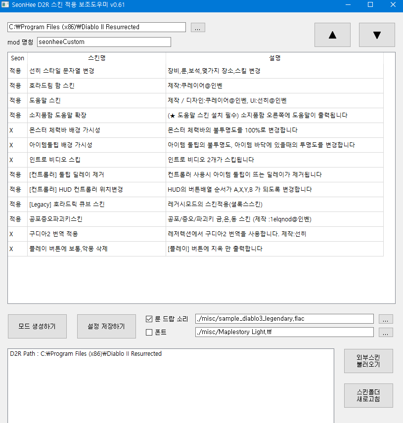 디아2 레저렉션 스킨 적용 도우미 사용방법