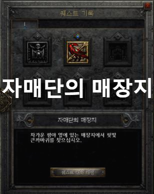 두 번째 퀘스트는 자매단의 매장지입니다. 두 번째 퀘스트는 카샤한테서 받을 수 있습니다.