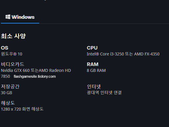 그래픽카드는 공식에서 명시한 Nvidia GTX 660 또는 AMD Radeon HD 7850 정도의 사양을 맞춰 주셔야 합니다.