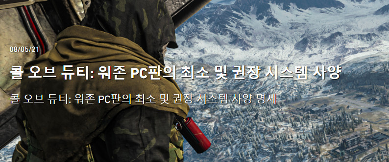콜 오브 듀티 워존 최소 사양