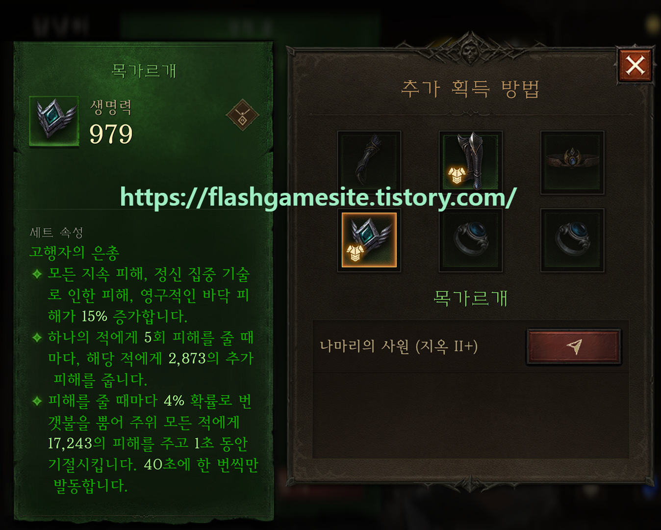 이번 글은 디아블로 이모탈 가장 많이 사용하는 고행자의 은총 세트 아이템편 입니다.